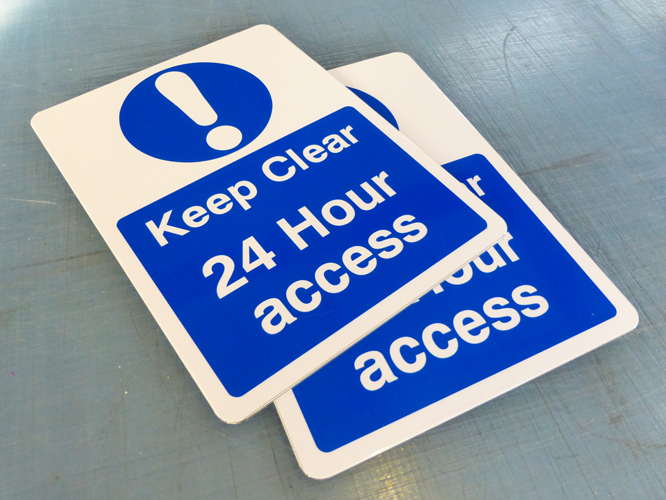 We use either 3mm ABS or 3mm or 4mm composite sheet for most of our signs. Many of our competitors use much thinner plastics, which may be cheaper, but never last as long as a thicker more substantial product.
